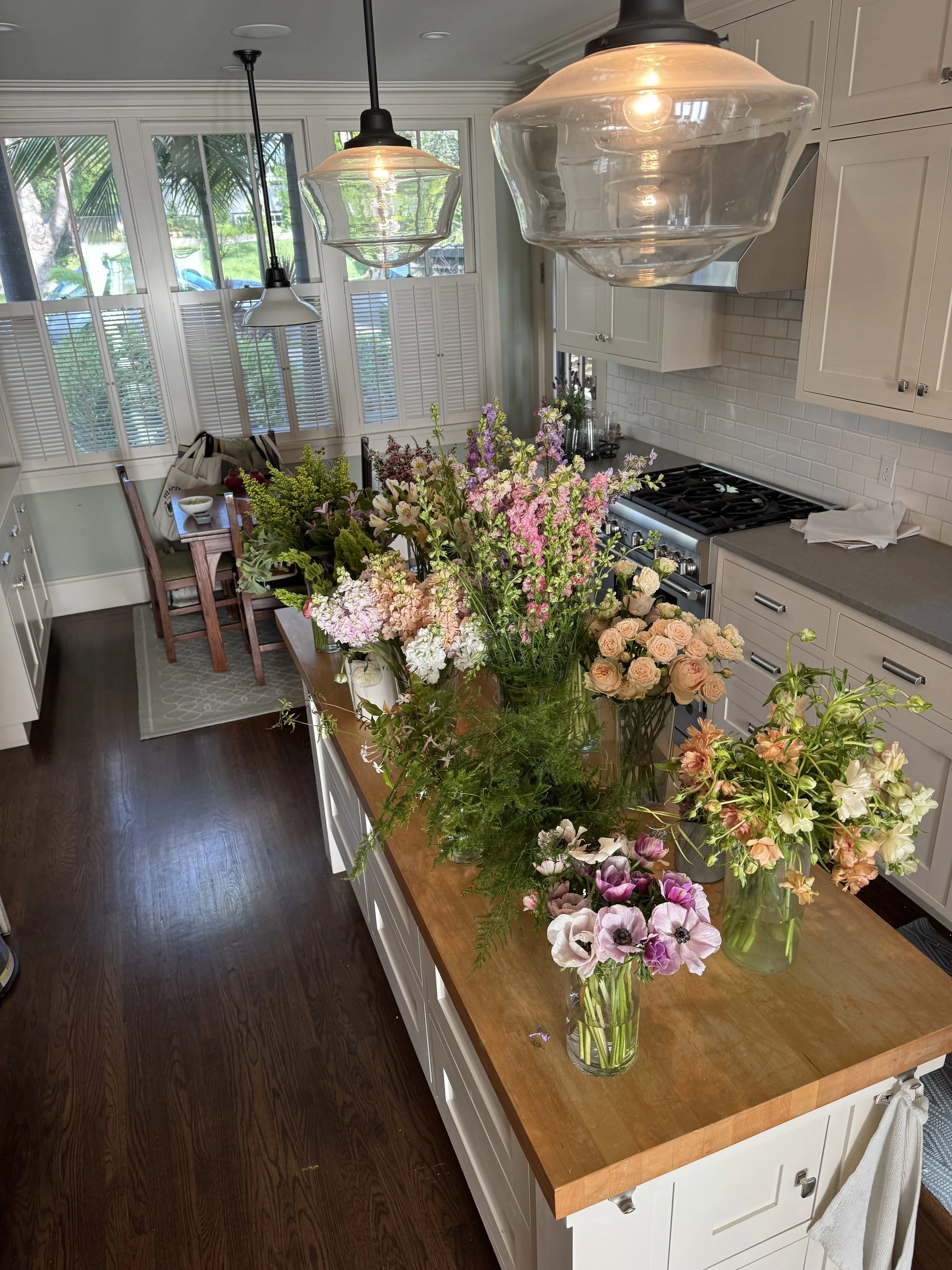 I bring the flowers and all the accompanying supplies, from extra clippers to bottles of bubbly. You bring the friends!